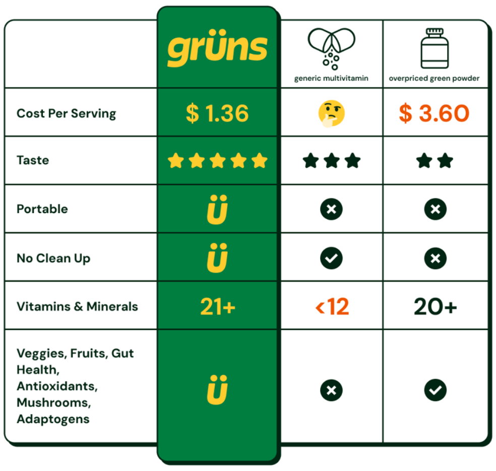 My wife and I have been eating our Grüns for about six months now and feel great! Plus, we’re disappointed when we miss them because they’re so yummy!
